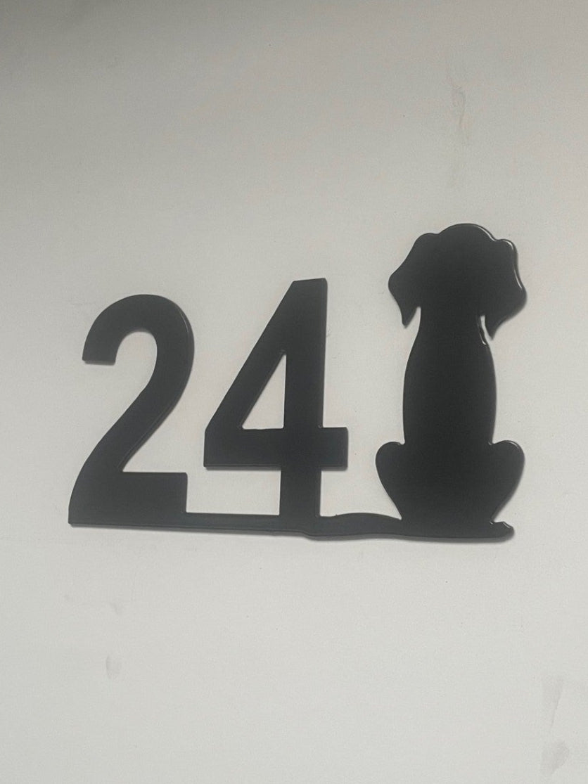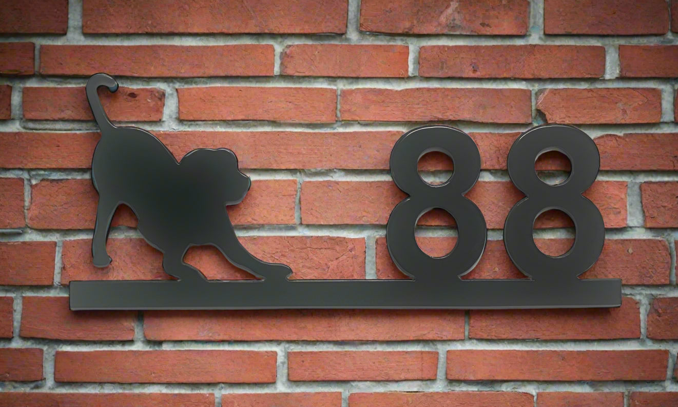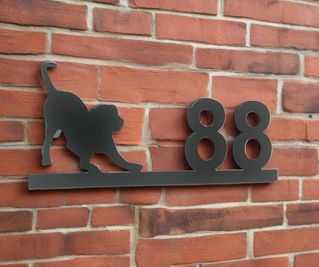 This professionally machine-cut metal number plate features a striking Labrador design, available in 2 styles and various colours. Perfect for personalization, choose from fixing holes or adhesive strip options. Custom sizes are also available upon request.